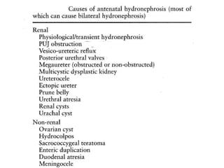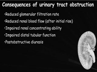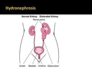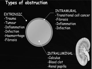 Hydronephrosis and hydroureter are common conditions, arising from obstruction in the urinary tract, which can be either physiologic or pathologic, and can be classified based on etiology and location of the obstruction. They can lead to significant renal damage and are associated with various causes, differing between adults and children. Diagnosis typically involves imaging techniques, while management may require surgical intervention, especially in cases of severe persistent hydronephrosis.