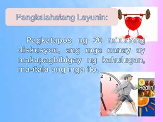 Ang dokumento ay tungkol sa kahalagahan ng wastong pamamaraan ng pag-aalaga ng katawan, kabilang ang regular na paghuhugas ng kamay, pagligo, at pagsisipilyo. Tinatalakay din nito ang mga epekto ng hindi wastong pangangalaga sa katawan, gaya ng mga sakit at mabahong amoy. Ang wastong hygiene ay itinuturo sa mga kabataan at nakakatulong sa kanilang kalusugan at tiwala sa sarili.