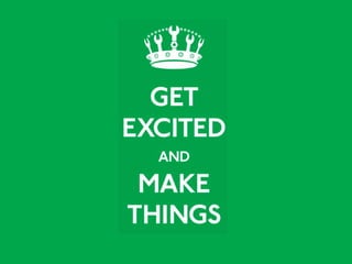 This document discusses ideas versus execution in starting a new project or business. It emphasizes that while having innovative ideas is important, execution is 99% of success. To succeed, one needs to both generate big ideas and also acquire functional skills to help build the idea. When first beginning, it is best to start small and release early and often, getting feedback and iterating on the product. Building the right team is also important for taking an idea from concept to reality.