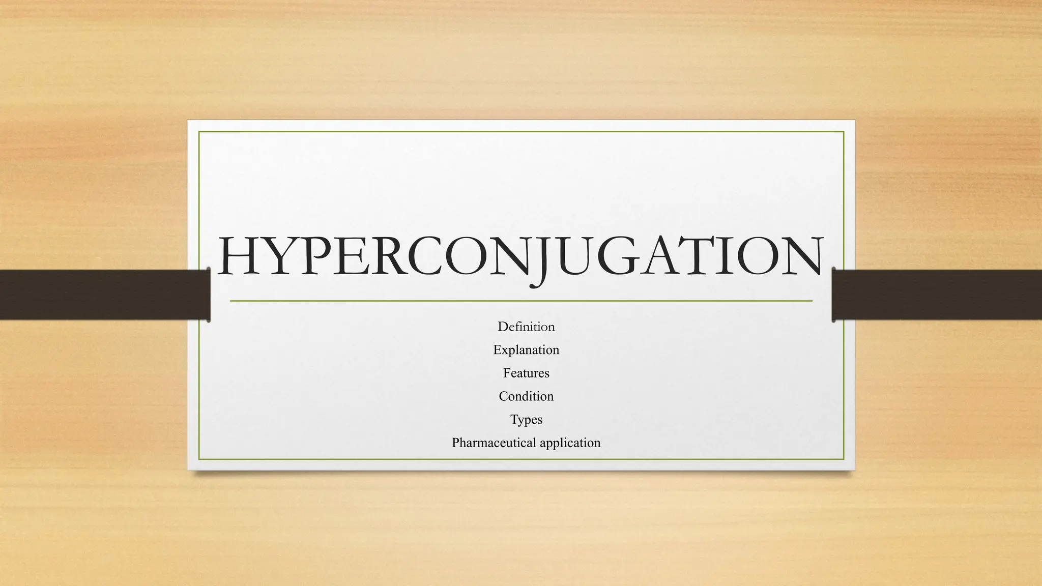 Hyperconjugation is a stabilizing interaction in organic chemistry that occurs when electrons in a sigma (σ) bond (usually C–H or C–C) interact with an adjacent empty or partially filled p-orbital or a π-orbital to increase the stability of the molecule.