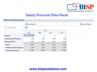This document discusses putting Oracle Hyperion Planning in maintenance mode via the command line, forecasting salaries and expenses in a salary forecast data form, and fixing a forecast for salaries, miscellaneous expenses, and total expenses based on headcount, average salaries, and an employee benefits percentage. It ends by asking if there are any questions.