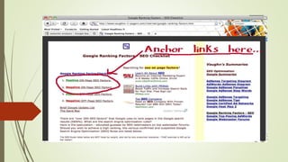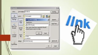 Hyperlinks allow users to connect to other files or portions of the same document by clicking on words, images or other elements. There are two types of links: anchor links that point to different sections within a document, and inline links that locate content in other remote files by searching for the document path. The key idea is that hyperlinks enable people to access information very quickly by browsing linked content.