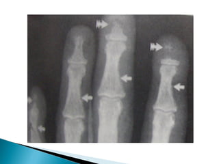 The document discusses primary hyperparathyroidism, which is caused by adenomas, hyperplasia, or carcinoma of the parathyroid glands. It causes increased calcium absorption and bone resorption while promoting calcium and phosphate excretion in the kidneys. Symptoms include kidney stones, bone loss, fatigue, and abdominal pain. Diagnosis involves blood tests showing elevated calcium and PTH levels. Treatment is parathyroidectomy for severe cases.