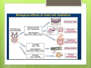Type I reactions are immediate and anaphylactic, mediated by IgE antibodies binding to mast cells. Type II reactions are cytotoxic and antibody-mediated, directly damaging cells. Type III reactions involve immune complex deposition causing inflammation. Type IV reactions are delayed and T cell-mediated, causing localized reactions where antigen is present. The types are distinguished by the mechanisms and timescales involved. Hypersensitivity reactions can cause issues in various tissues and organs.