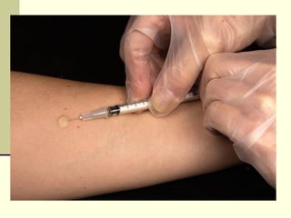 Type I are immediate and anaphylactic reactions mediated by IgE antibodies. Type II involve antibody-dependent cell cytotoxicity. Type III occur when immune complexes are deposited in tissues. Type IV are cell-mediated reactions like contact dermatitis and tuberculosis that peak in 2-3 days. Each type involves different mechanisms and antibodies that can cause tissue damage in exaggerated immune responses.