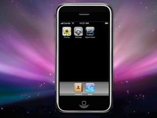 The document discusses the development of a hyperzoom application for the iPhone, emphasizing personal experiences from the initiator, Arnout de Vries. It highlights both the positive aspects, such as an extensive SDK and good documentation, and the challenges posed by Apple's rules and non-compliance issues. Future work includes further exploration of app and browser functionalities and opportunities for mobile advertising.
