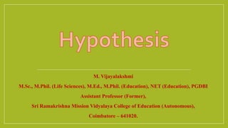 This document defines and discusses different types of hypotheses used in research. It begins by defining a hypothesis as an educated guess formulated to explain observed facts and guide further investigation. The main types discussed are:
