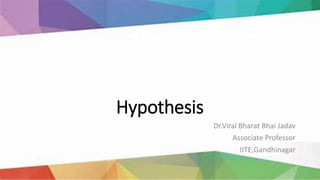 This document discusses the concept of a hypothesis, defining it as a proposition that can be tested for validity through various types such as declarative, directional, non-directional, null, and operational hypotheses. It outlines the characteristics of effective hypotheses, their formulation based on prior evidence, and their relationship to variables in research. Additionally, it provides examples related to teaching aptitude and instructional methods, emphasizing the importance of data collection and logical analysis in solving problems.