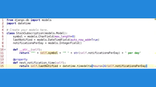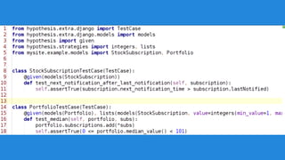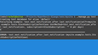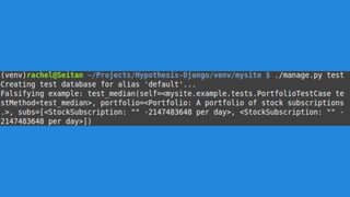 Hypothesis is a property-based testing library that generates random data for testing code. It simplifies examples, remembers interesting inputs, and can deal with complex data types. The hypothesis-django library extends Hypothesis for testing Django applications by providing custom field types, generating child models, and fixtures. The presentation introduced Hypothesis and hypothesis-django, explained why property-based testing is useful, and provided instructions for getting started.