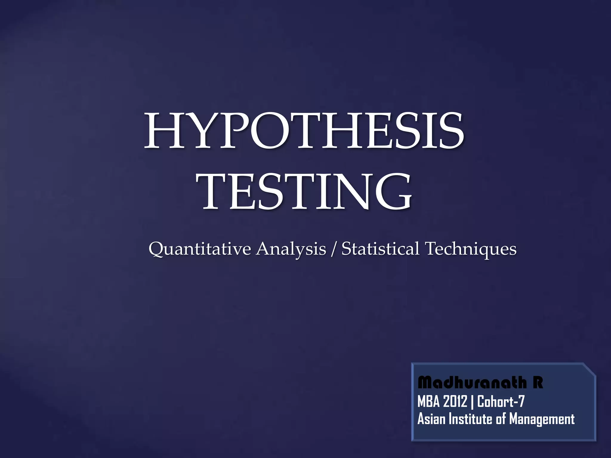 The document discusses hypothesis testing in quantitative analysis, defining key concepts such as null and alternate hypotheses, and the process of determining these hypotheses through statistical evidence. It outlines the importance of type I and type II errors, including their probabilities (α and β), and how they impact decision-making regarding the null hypothesis. Additionally, it explains the interpretation of p-values in assessing the strength of evidence against the null hypothesis.