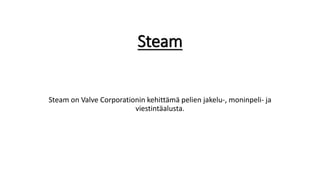 Steam on ValveCorporationin kehittämä pelien jakelu-, moninpeli- ja