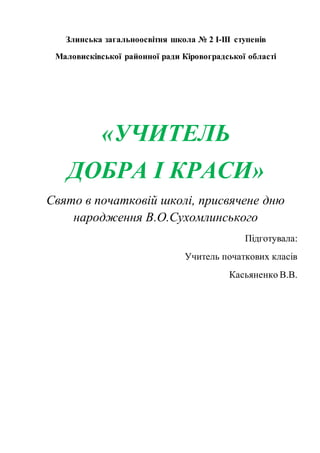 Так навчав великийпедагог В.О.Сухомлинський. Нехай над кожною