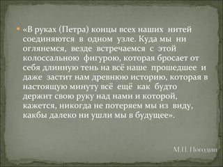 Документ анализирует реформы Петра I и их значимость для России, подчеркивая разногласия во мнениях историков об их последствиях. Историки рассматривают Петра как фигуру с огромным влиянием, но мнения о его методах и результатах варьируются от восхищения до критики. В заключение подчеркивается, что оценка его реформ зависит от времени и субъективных взглядов исследователей.