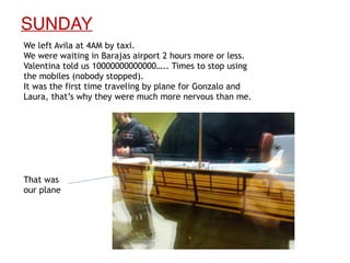 The document summarizes a student's trip to Amsterdam over several days. They traveled by plane and taxi, stayed with a host family, visited several museums, toured the city via canal boats and trams, went bowling, and shopped before returning home tired after saying goodbye to new friends. It was the first time traveling by plane for two students, who were more nervous, while the author had a pleasant experience staying with a friendly host family and exploring Amsterdam's culture and sights.
