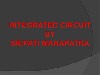 1. Integrated circuits are small chips that can function as amplifiers, oscillators, timers, microprocessors, or computer memory. They are made on silicon wafers that can hold hundreds to millions of transistors, resistors, and capacitors.
