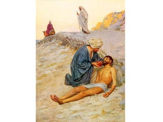 The document presents a lesson about kindness, highlighting the commandment from John 15:12 to love one another. It includes several scenarios with questions intended to prompt discussions about being kind in different situations. Examples range from sharing and helping peers to supporting family members in distress.