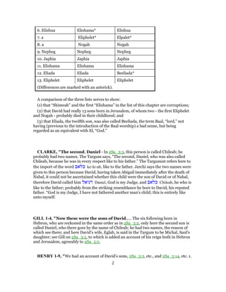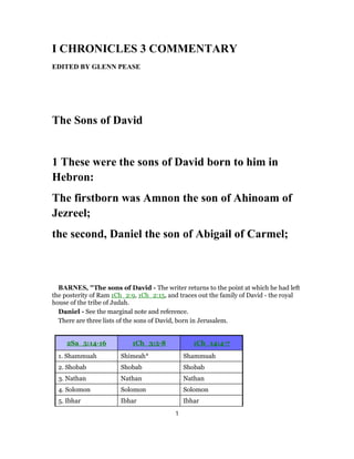 1) The passage lists the six sons that were born to David in Hebron - Amnon, Daniel, Absalom, Adonijah, Shephatiah, and Ithream and their mothers.