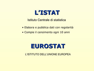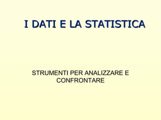 Il documento tratta dell'importanza dei dati e delle statistiche, evidenziando il ruolo dell'ISTAT e di Eurostat nella raccolta e pubblicazione di informazioni. Illustra come calcolare le percentuali e diversi strumenti di rappresentazione visiva dei dati, come istogrammi e diagrammi. Inoltre, menziona l'uso di aerogrammi per visualizzare proporzioni in formato 'torta'.
