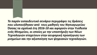 Το παρόν εκπαιδευτικόσενάριο περιγράφει τις δράσεις