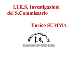 I.I.E.S. Investigazioni, gestito dal commissario Enrico Summa, offre servizi di indagini private e giudiziarie in vari ambiti, tra cui giustizia penale, aziende e privati. L'istituto è autorizzato a condurre indagini difensive, investigazioni per parti offese e verifica di situazioni patrimoniali, oltre a servizi per compagnie di assicurazione e indagini personali. I servizi comprendono anche accertamenti di infedeltà, ricerche di persone scomparse e sostegno per casi di bullismo o stalking.