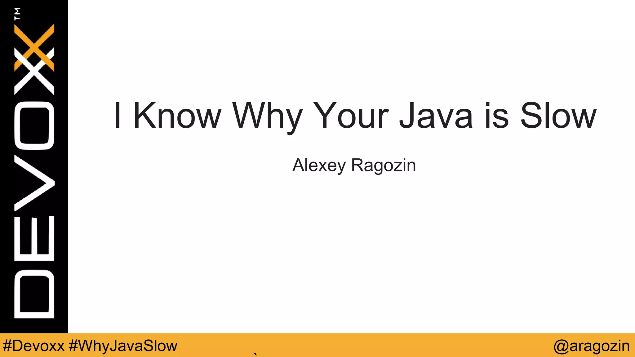 The document discusses performance issues that can arise in Java applications and strategies for identifying bottlenecks. It provides an overview of potential causes of slowness at the server, browser, application, and database levels. It also describes various profiling tools like JVisualVM, JProfiler, and SJK ttop that can help analyze thread CPU usage, memory usage, and garbage collection to diagnose specific problems like CPU hogs, thread contention, and full GC pauses. The document provides examples of how to profile applications built with JEE technologies like JBoss, Seam and Hibernate. It also lists JVM options for tuning garbage collection, particularly for the Concurrent Mark Sweep (CMS) and Garbage First (G1