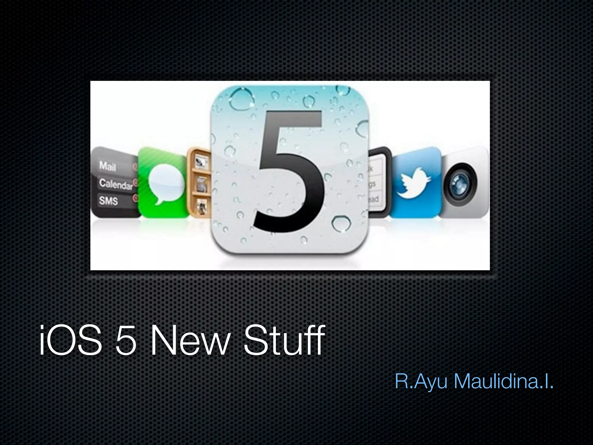 The document discusses the new features introduced with iOS 5, highlighting over 200 user features, including the iCloud storage API which enables seamless data synchronization across devices without requiring individual sync servers. It explains the concepts of iCloud, such as ubiquitous computing, iCloud containers, and the integration of Core Data along with APIs for file management and conflict resolution. Additionally, it covers real-time image processing capabilities for face detection and the implementation of a Newsstand app for managing content subscriptions and updates.