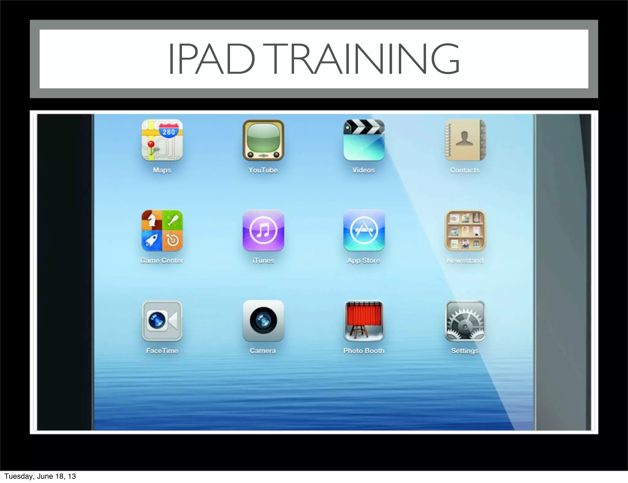 This document provides an overview of iPad training covering the following topics: