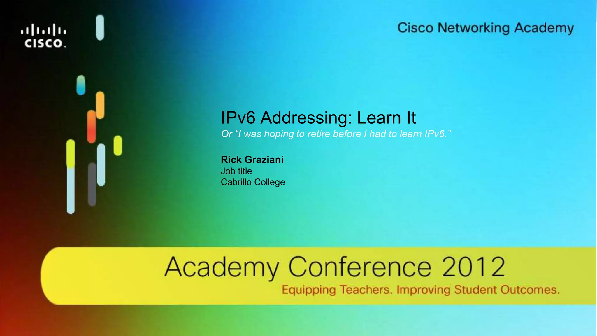 The document discusses IPv6 addressing and subnetting. It begins with an overview of IPv6 address notation and structure, noting that addresses are 128-bit and represented in hexadecimal by eight 16-bit segments separated by colons. It then discusses the vast number of possible IPv6 addresses and rules for abbreviating addresses. The document focuses on global unicast addressing, including address types, notation, and techniques for subnetting IPv6 prefixes. It provides an example network configuration and output from show commands.