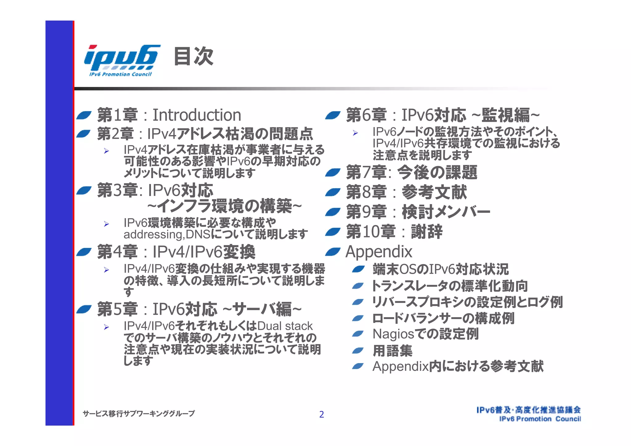 I Pv6 Service Deployment Guideline 1. 2. 目次