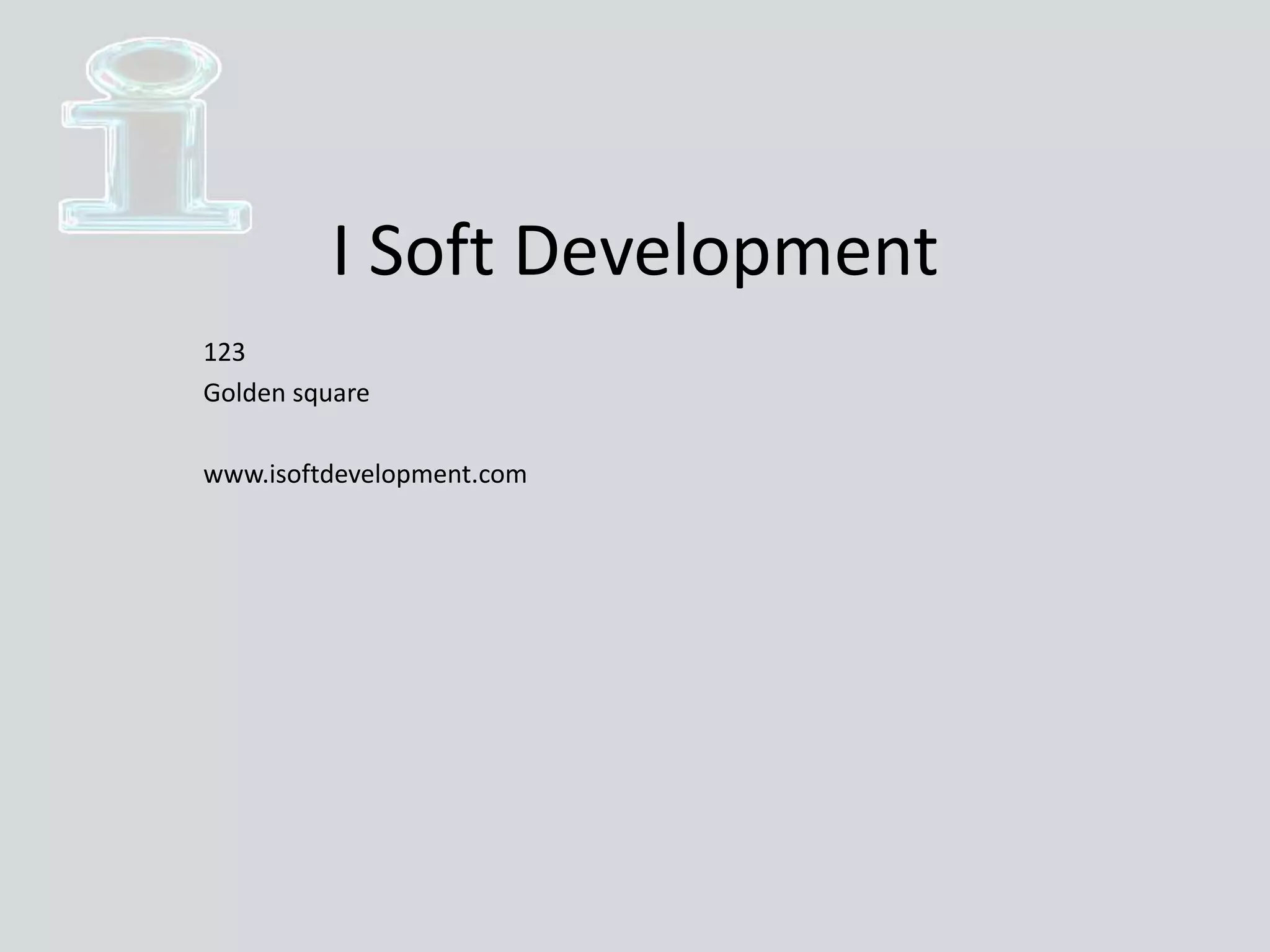 I Soft Development is a web and mobile app development company located in Golden Square that provides services including web apps, iPhone apps, Android apps, SEO, and social media marketing. Their mission is to develop elegant digital solutions to help clients establish an online presence through quality software and customer satisfaction. They have experience building various types of websites, mobile apps, and working with over 100 clients over their 7 years in business.