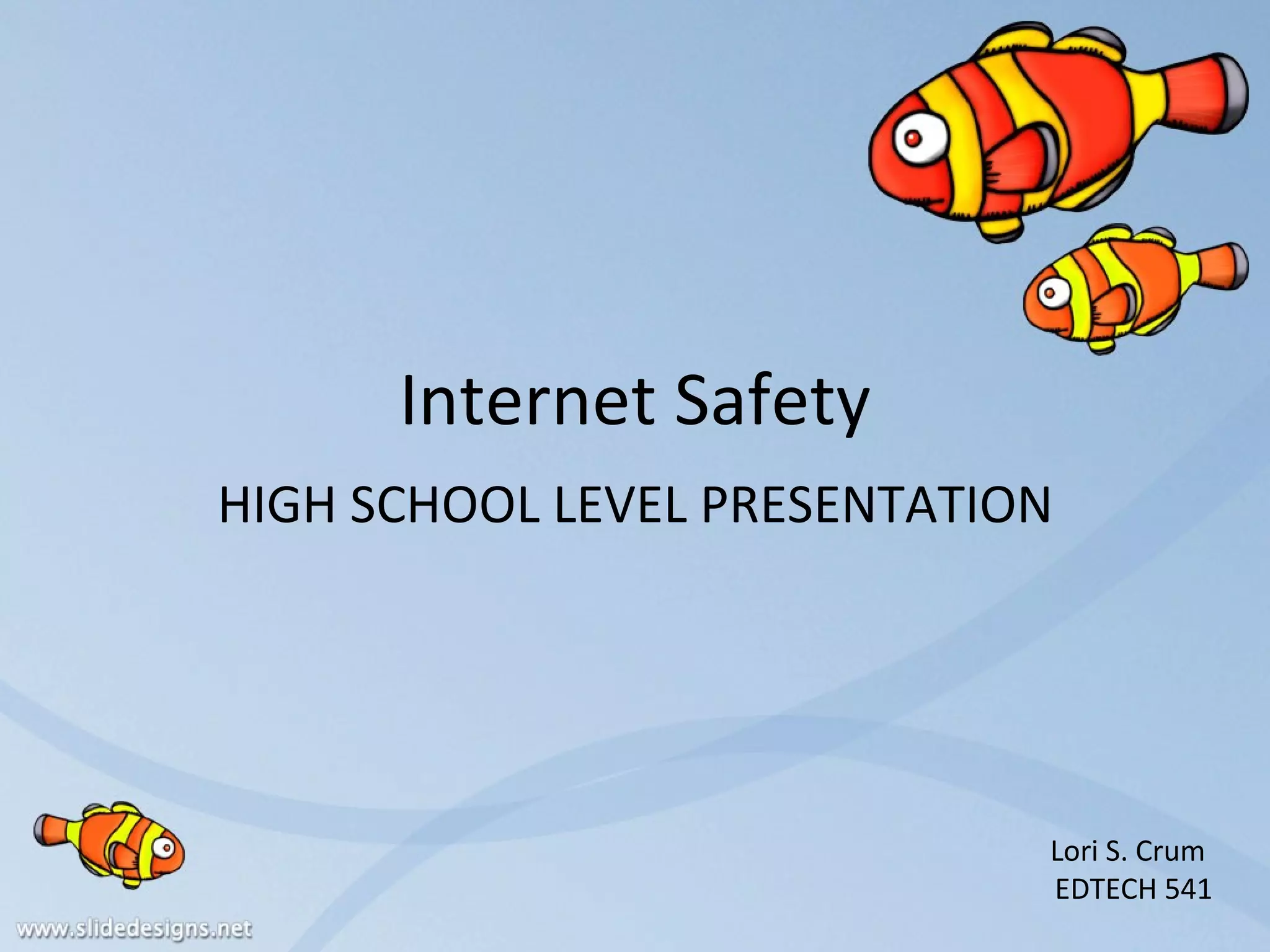 This document provides information and advice about internet safety for high school students. It discusses risks like sharing private information online, cyberbullying, and interacting with strangers. It recommends being cautious about sharing personal details or photos, meeting online contacts in person, opening emails from unknown senders, and providing passwords or information in response to messages. The document also includes teaching scenarios and quiz questions related to internet safety best practices.