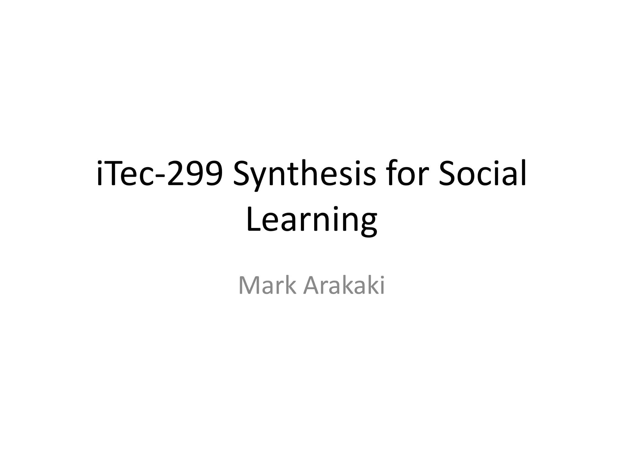 The document describes the student's experience in an iTec-299 class that explored using social technologies for learning.