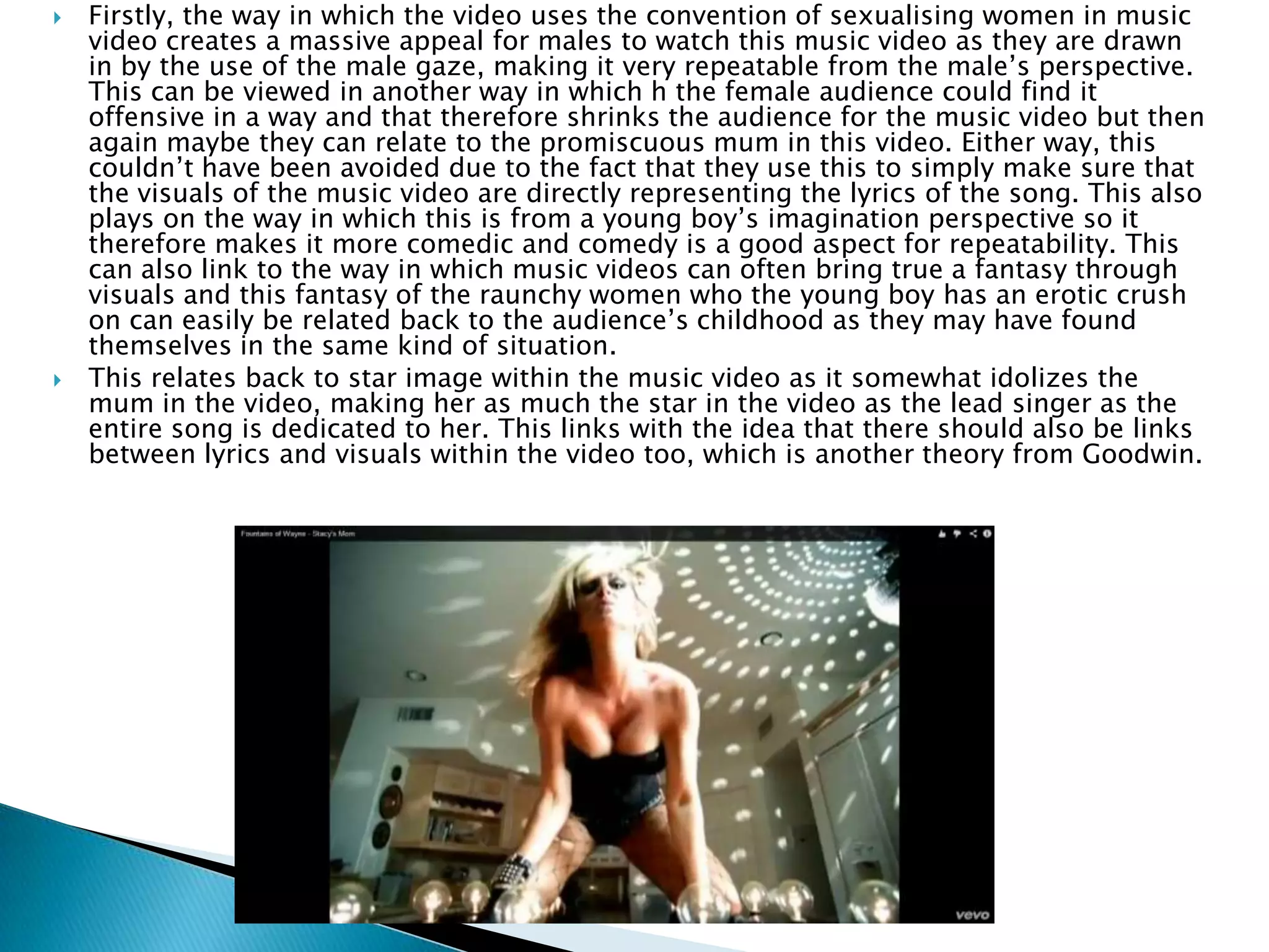 1. Sexualizing women to appeal to male viewers while potentially offending female viewers. This represents the song lyrics visually.