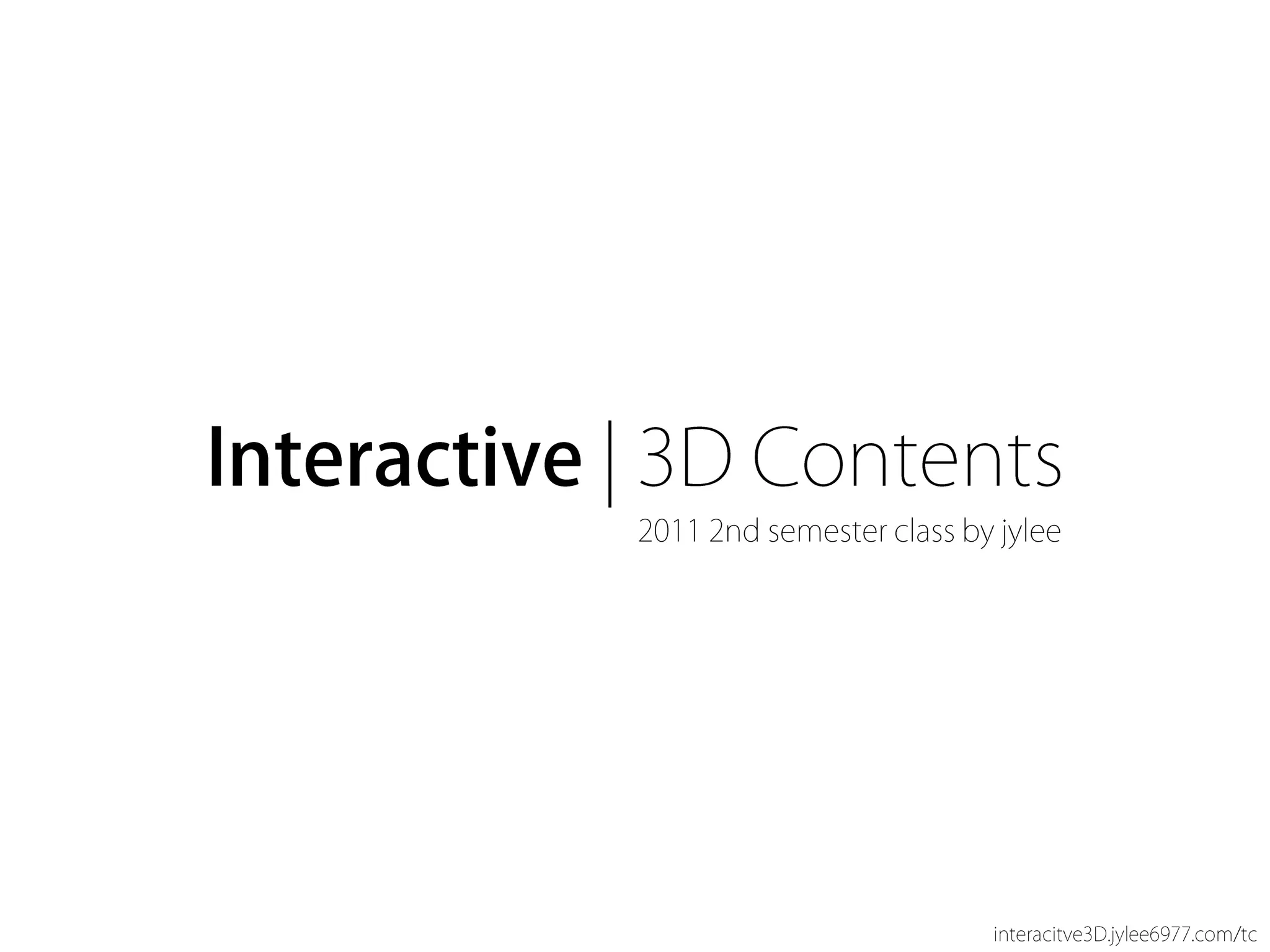 The document outlines a semester schedule for an interactive 3D imaging class, listing the date, topic, contents, and textbook for each of the 15 weekly classes, which cover topics like interactive trends, user interactions, service design, and planning, designing, and creating interactive 3D images.