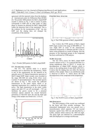 The study investigates the growth and characterization of barium-doped potassium hydrogen phthalate (KHP) single crystals, which have enhanced nonlinear optical properties. The results indicate that the addition of barium ions does not alter the crystal structure, but improves second harmonic generation efficiency and maintains thermal stability. Various analytical techniques such as XRD, UV-Vis spectroscopy, FTIR, and TG/DTA were employed to confirm the optical transparency, molecular structure, and thermal analysis of the doped crystals.