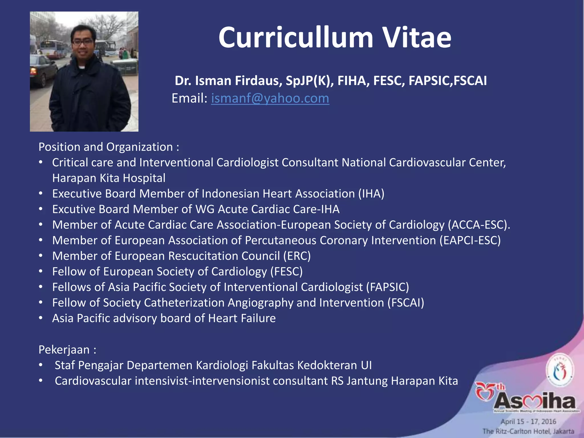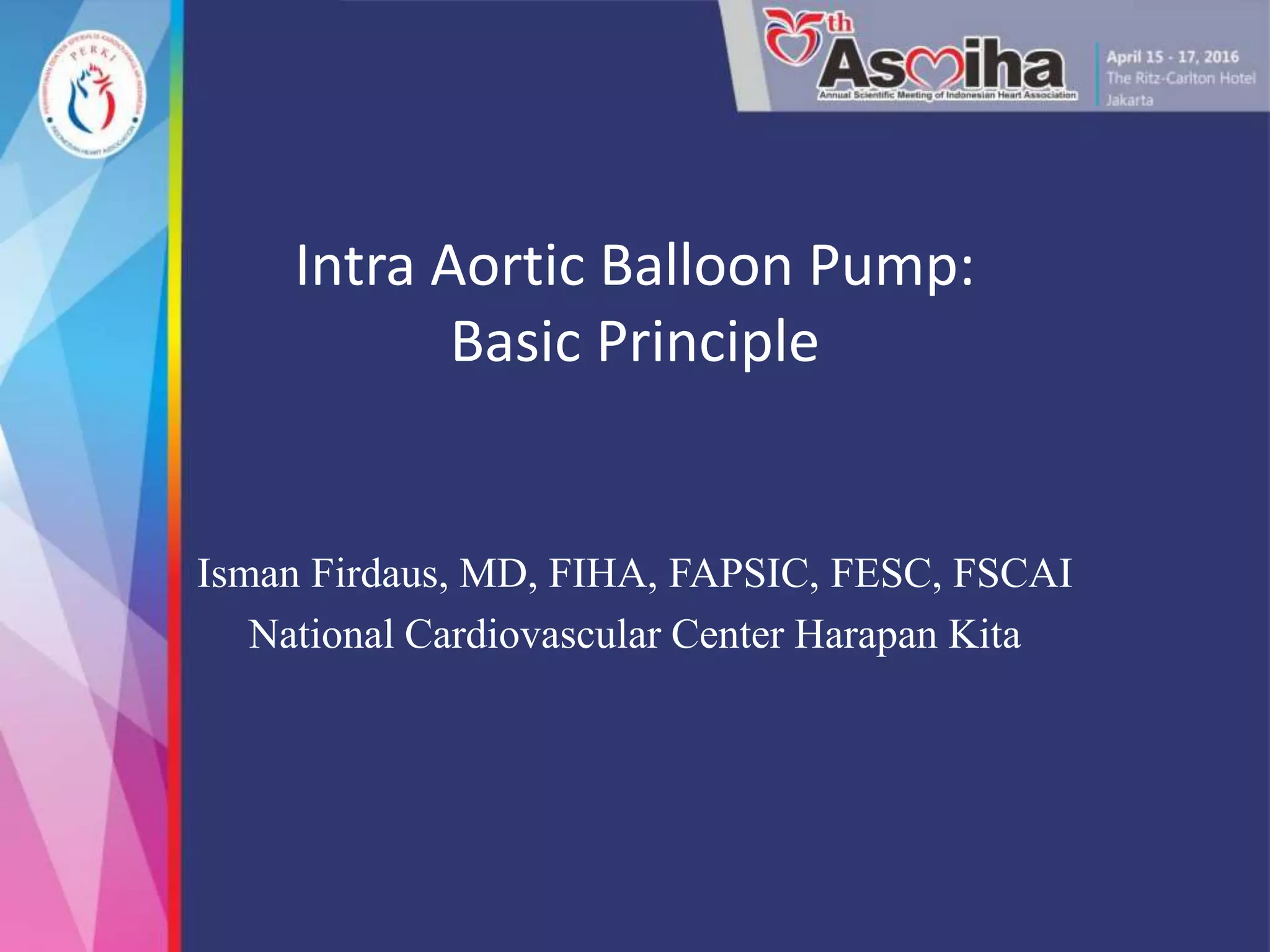 Dr. Isman Firdaus is a critical care and interventional cardiologist affiliated with the National Cardiovascular Center, with multiple prestigious memberships and recognitions in cardiology. The document details the intra-aortic balloon pump (IABP) as a crucial tool for managing hemodynamically unstable patients, covering its workings, determinants of myocardial oxygen delivery, and importance of timing in its application. Additionally, potential complications and guidelines for its use in high-risk procedures are discussed, emphasizing IABP's role in cardiac care.