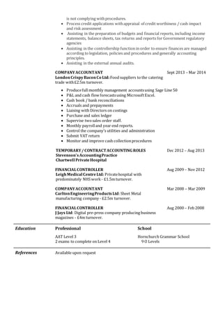 Iain Booth is a highly experienced accountant seeking a new position. He has over 15 years of experience in accounting and finance roles across various industries. Booth has strong skills in accounting software like Sage and Microsoft Excel, as well as experience preparing budgets, financial reports, and managing cash flow. He is skilled at turning around poorly performing accounts and leading finance teams. Booth offers a wealth of experience and a strong work ethic to any finance department.