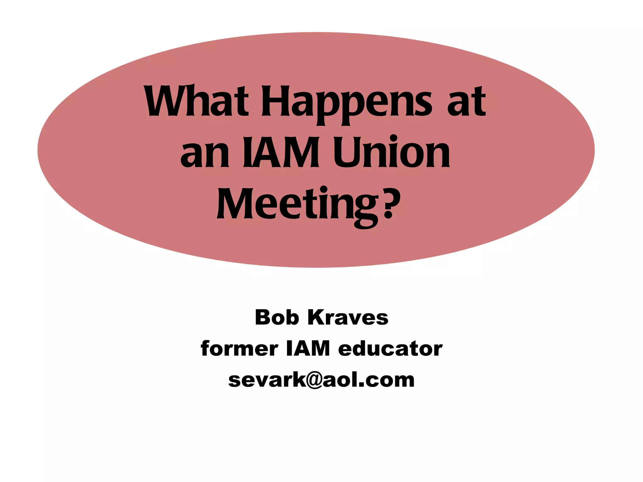 The document describes the standard order of business for meetings of the International Association of Machinists (IAM) union locals. It includes steps like calling the meeting to order, reciting the pledge of allegiance, taking roll call of officers, reading and approving previous meeting minutes, financial reports, committee reports, new and unfinished business, and adjourning the meeting. The order is meant to keep meetings organized and ensure all required business is addressed.