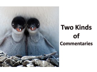 The document discusses the nature of literary commentary, emphasizing the importance of analyzing both the content and techniques used by authors to create meaning. It encourages a balanced approach that avoids simply listing observations, while also steering clear of overly philosophical interpretations. The ideal commentary integrates interpretation, discussion of techniques, and assessment of their effects, linking them directly to the meaning conveyed in the text.