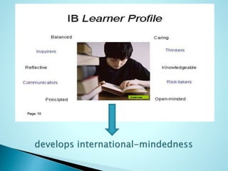 The International Baccalaureate (IB) Middle Years Programme (MYP) provides a framework for students aged 11-16 that allows for flexibility based on national or local requirements while keeping the learner at the center. The MYP focuses on developing approaches to learning, intercultural awareness, communication skills, and subject areas through five contexts like exploration of real-world issues. Assessment in the MYP includes criterion-related internal and external assessments to evaluate student understanding and provide feedback to improve teaching.