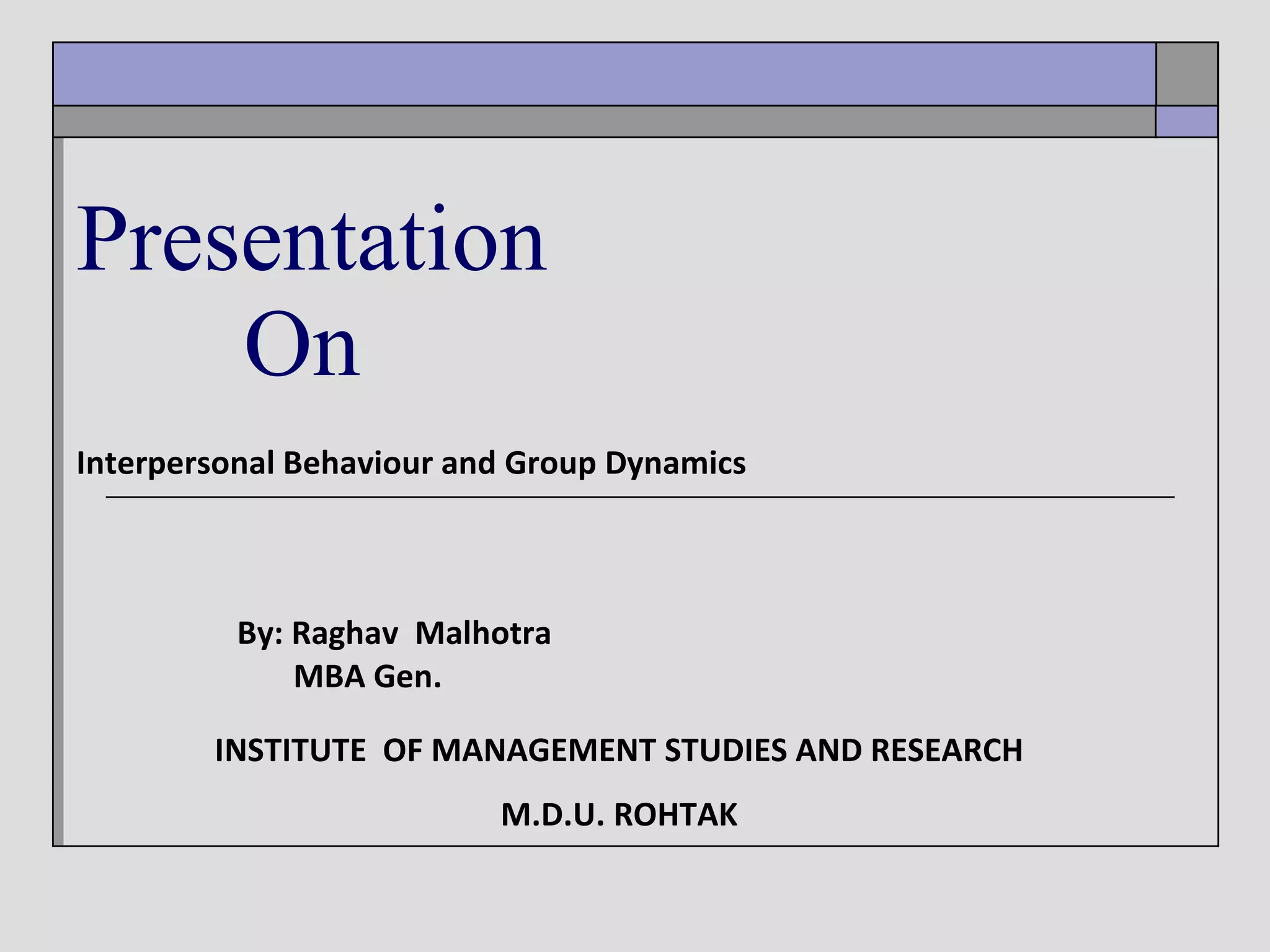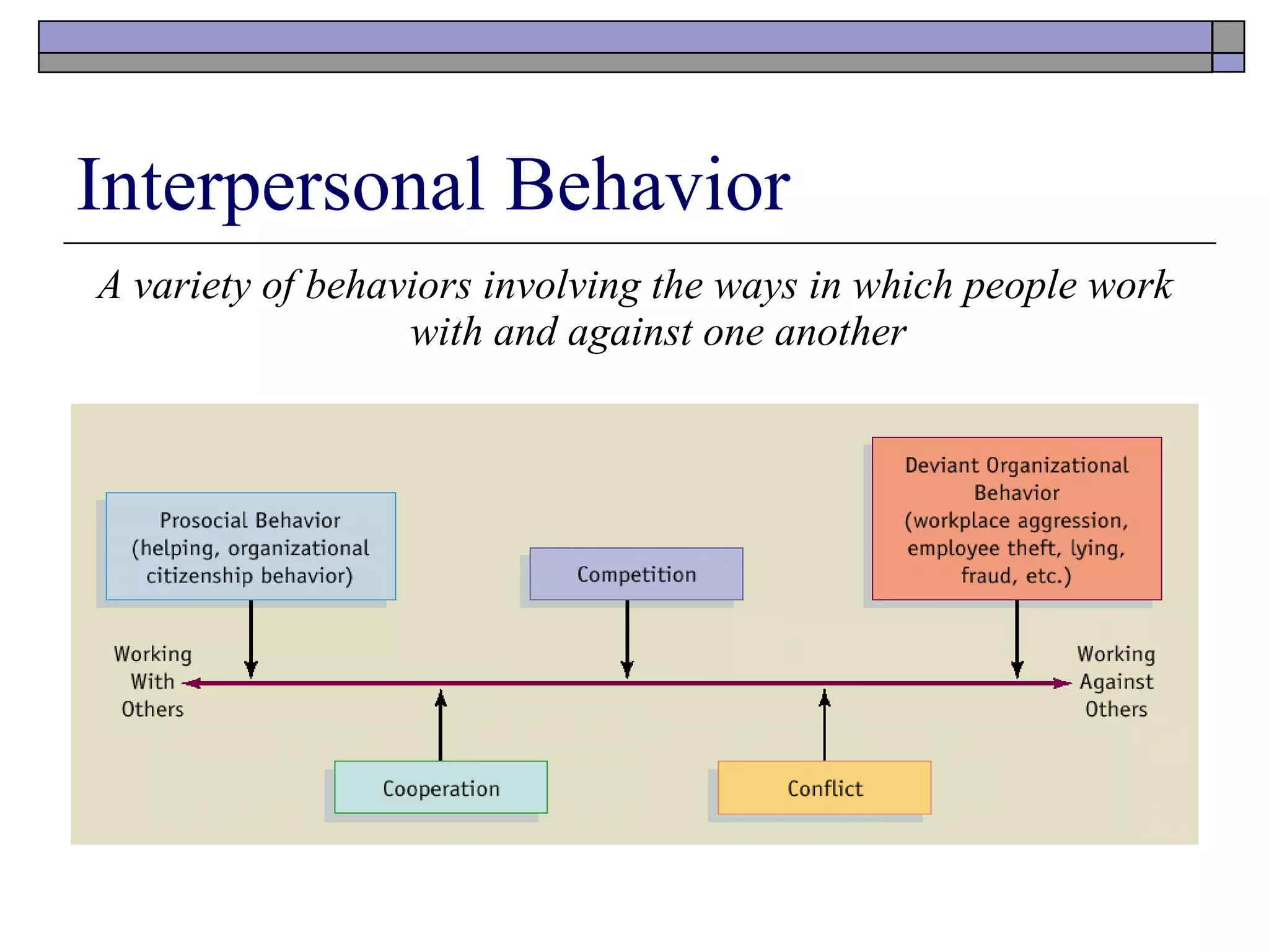 This document discusses key concepts in interpersonal behavior and group dynamics. It covers psychological contracts, trust, prosocial behavior, organizational citizenship behavior, cooperation vs competition, and personal orientations. The main points are: