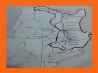The Ibanag people are an ethnic group found primarily in the provinces of Cagayan, Nueva Vizcaya, and Isabela in the Philippines. They speak the Ibanag language and have a population of around 500,000. The Ibanag are known for their agricultural traditions, fishing, and unique cuisine centered around ingredients from their environment like rice, fish, vegetables, and fruits. Their culture is also expressed through folktales that promote values like love, peace, and morality.