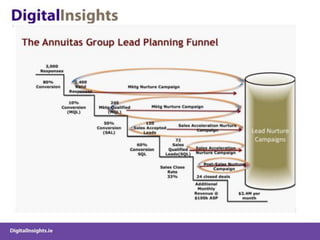 The document discusses B2B content marketing strategies, emphasizing the importance of creating engaging content tailored to target audiences in different stages of the buying process. It identifies challenges in lead management, such as unqualified leads and lack of visibility in the sales funnel, and proposes solutions, including developing buyer personas and implementing a structured lead nurturing process. Key advantages of effective lead management include optimizing marketing impact, fostering closer ties between sales and marketing, and enhancing customer relationships.