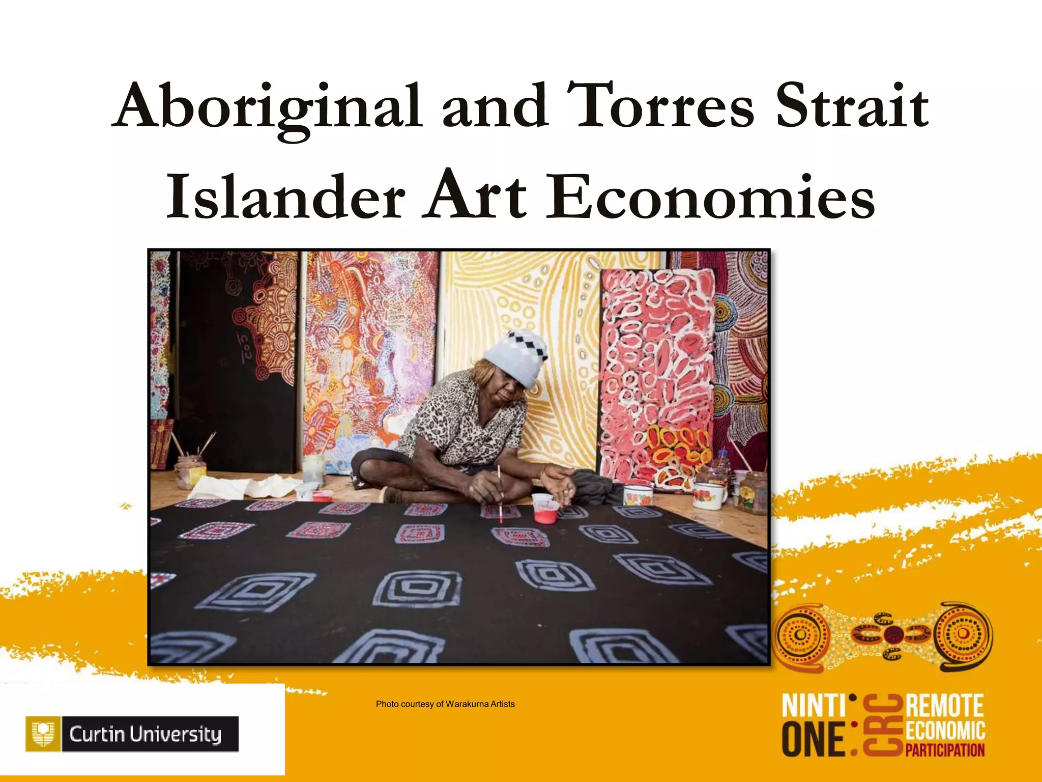 The document outlines the Aboriginal and Torres Strait Islander Art Economies Project, which is aimed at understanding and enhancing the art economy associated with indigenous art in Australia, involving collaboration from various academic and community stakeholders. The project focuses on research questions related to the scale, market opportunities, and business models within the art sector, and encompasses a range of community engagements and consultations. With ongoing data collection and analysis, early findings reveal insights into audience behavior, motivations, and economic dynamics of the art market.