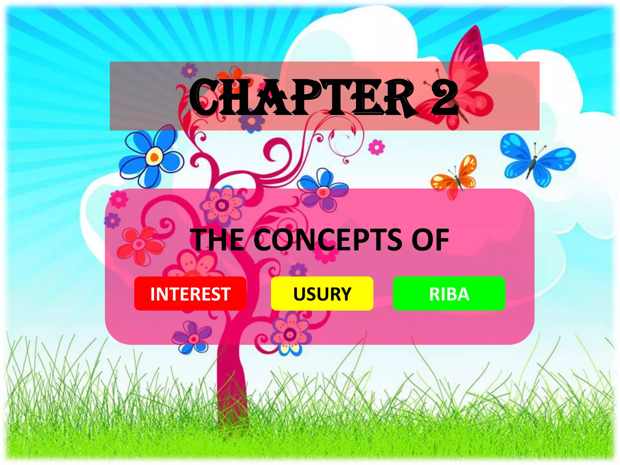 Riba refers to interest or usury which is forbidden in Islamic economic jurisprudence. There are two main types of riba - riba al-nasiah which refers to time period and riba al-fadl which is the exchange of commodities of the same kind in unequal proportions. Scholars have different views on what constitutes riba al-fadl based on characteristics of commodities. Riba is prohibited in Islam as it is an unlawful forced addition while profit from trade and business is permitted if derived fairly through mutual consent and sharing of risk.