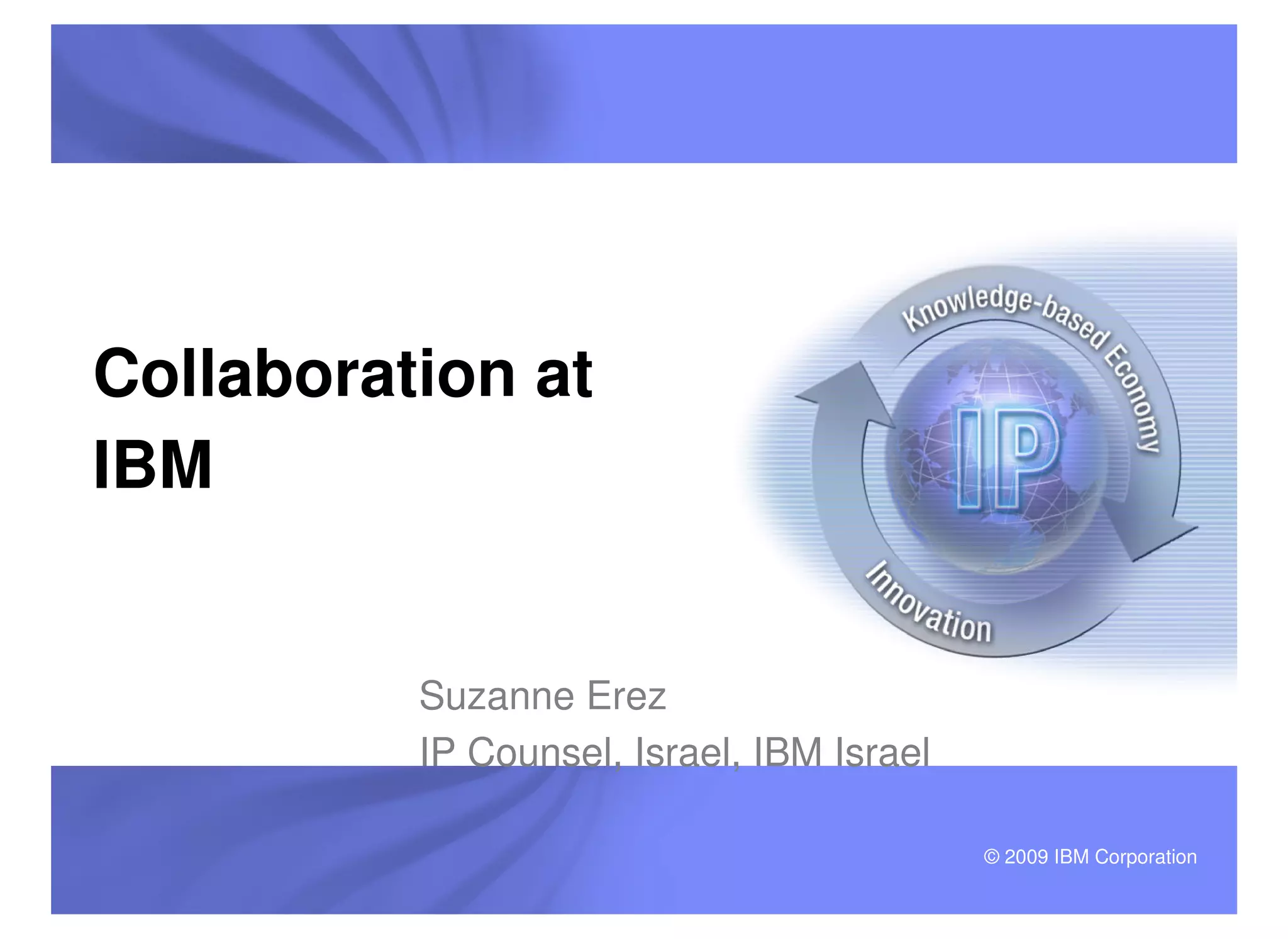 IBM promotes collaboration and open innovation to drive growth. It has partnerships with academia, businesses, governments and through programs like Innovation Jams. IBM uses collaborative research centers, predictive tools, and partnerships to identify trends and develop solutions for societal issues. The company helps clients build smarter planet systems using real-time data, sensors and analytics.
