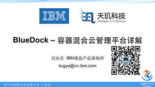 该文档介绍了在2016年全球运维大会上海站的内容,聚焦于bluedock容器混合云管理平台及其与Kubernetes和Mesos的集成。文中探讨了容器云的必要性、IBM天玑容器云的功能和未来展望,以及其架构和主要组件。最后,文档提供了用户案例和未来发展方向。