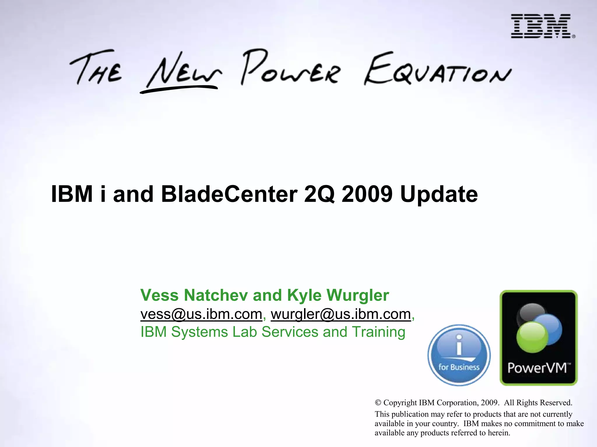 IBM released updates about IBM i on blade servers in 2Q 2009. Key points include: