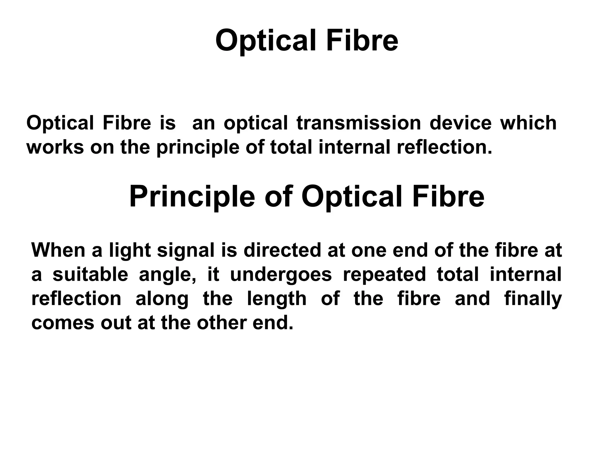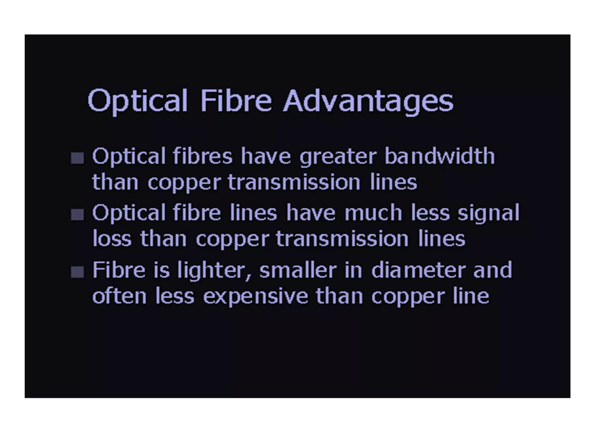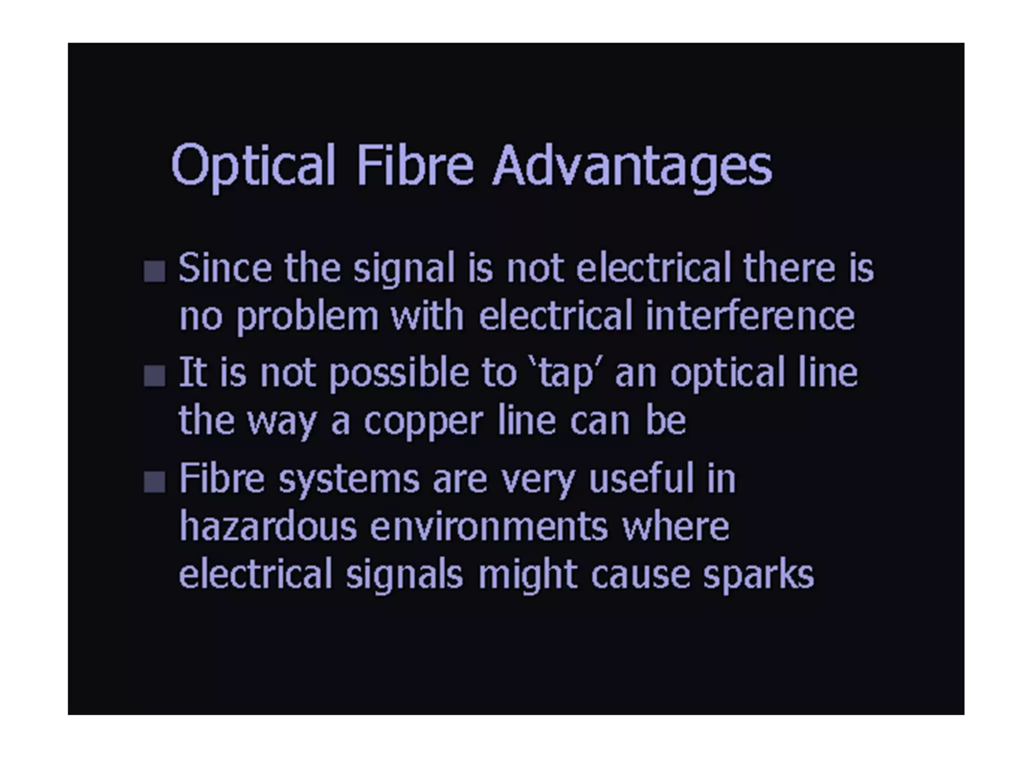 The document discusses optical fibers, which transmit light through the principle of total internal reflection. It describes the core, cladding, buffer, and jacket layers of optical fibers and compares single mode, multimode step index, and multimode graded index fibers. Key advantages of optical fibers include potential low cost using sand-based glass, enormous bandwidth, and high signal security. Fiber specifications like attenuation, dispersion, bandwidth, and numerical aperture are also outlined.