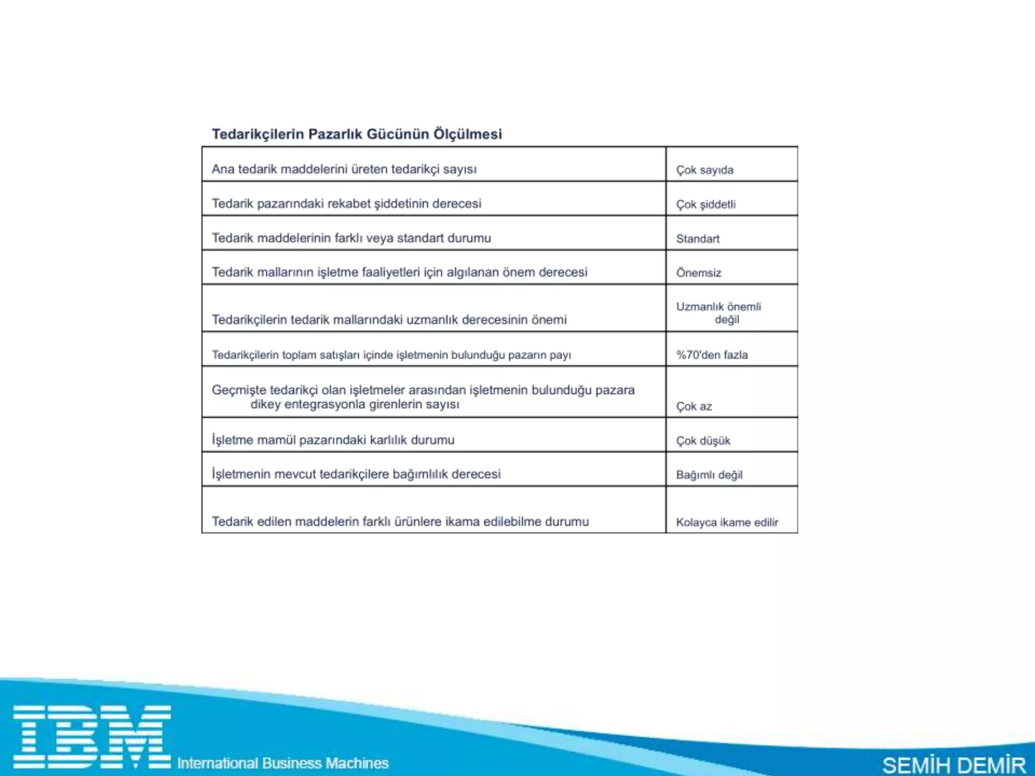 fazladır • Alıcıların pazarlık gücü yüksek olduğu ve IBM in fiyatları da yüksek olduğu